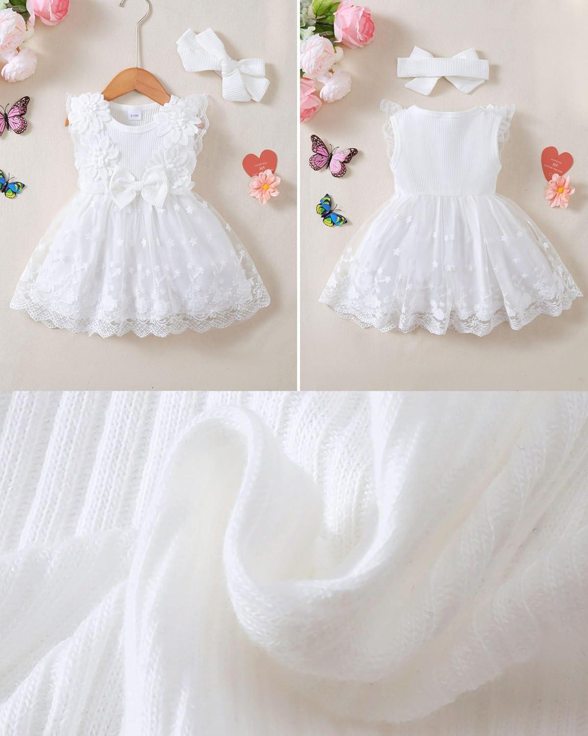 Renotemy Baby Girl Flower Dress Summer, Tutu Tulle Boho Princess Wedding Birthday Party Dresses for Infant Girls 0-18 Months(Off-white Lace)