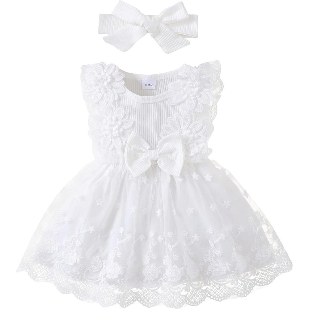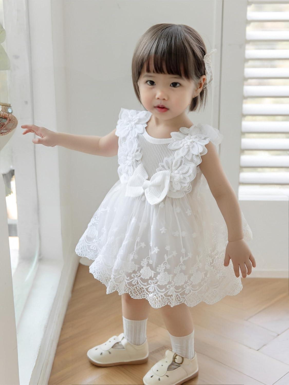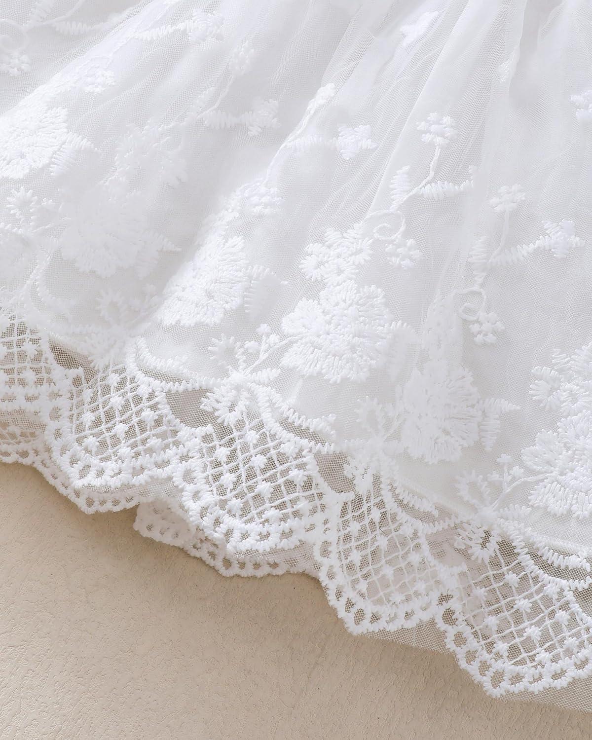 imageRenotemy Baby Girl Flower Dress Summer Tutu Tulle Boho Princess Wedding Birthday Party Dresses for Infant Girls 018 MonthsOffwhite Lace