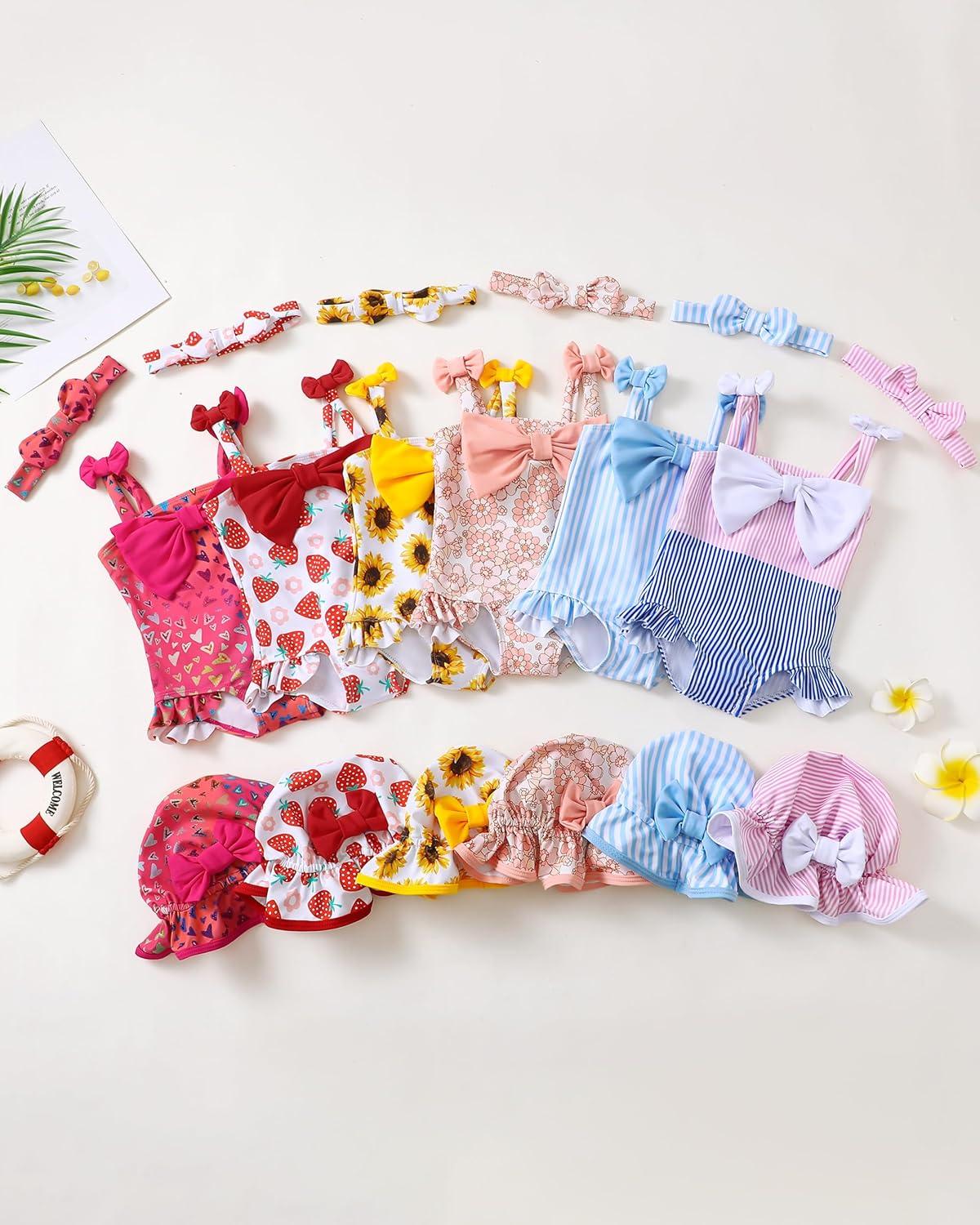 Renotemy Baby Girl Swimsuit Infant Bathing Suit Swimwear Sleeveless Bikini Tankini Toddler Girl One-Piece Swimsuit with Hat(Yellow Sunflower)