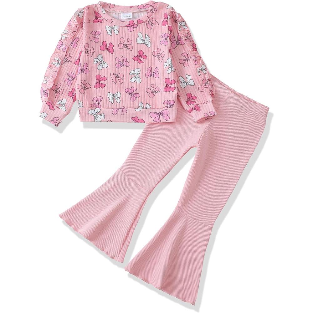 imageRenotemy Toddler Baby Girl Clothes Fall Winter Outfits Ruffle Sleeve Crew Neck Sweatshirts Flare Pants Set 12Months4 YearPink Bow