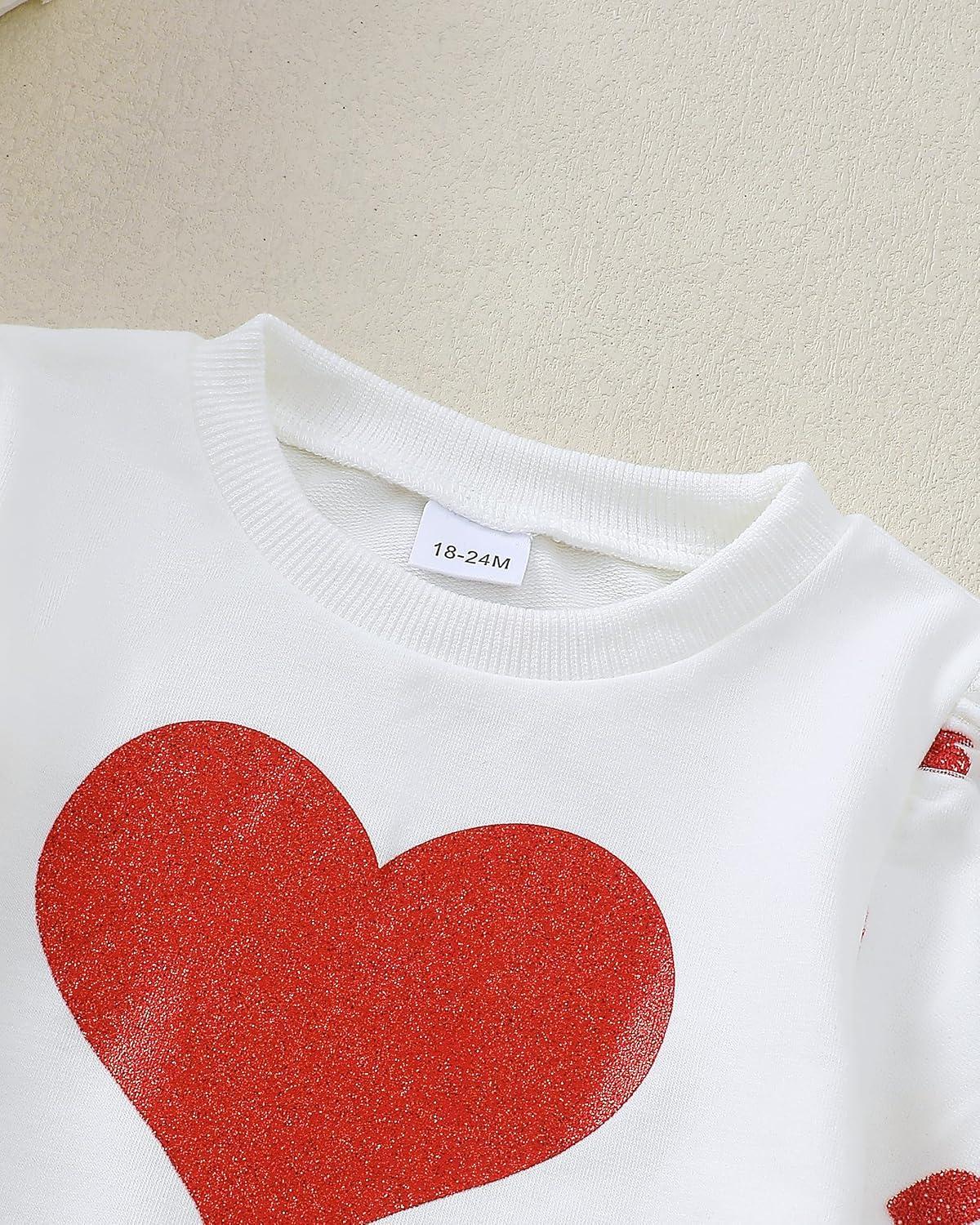 imageRenotemy Toddler Baby Girl Fall Winter Skirt Set Sweatshirt Pleated ALine Dress Little Girls Clothes 2Piece Outfits 18M6TRed Heart
