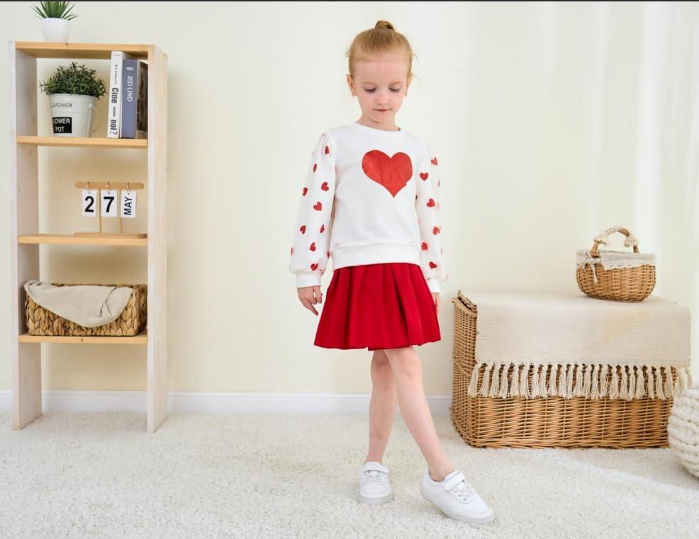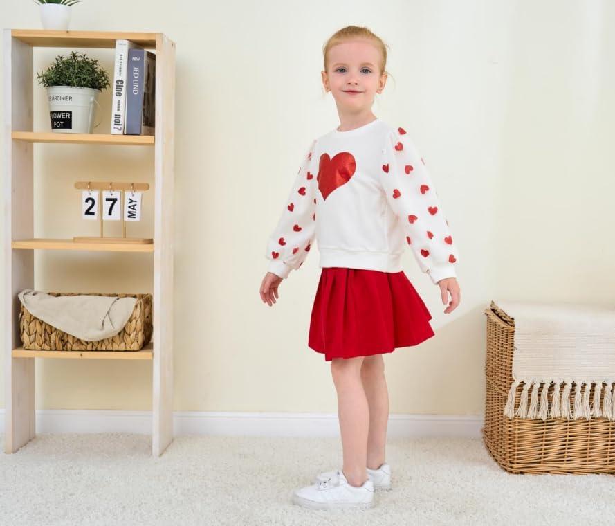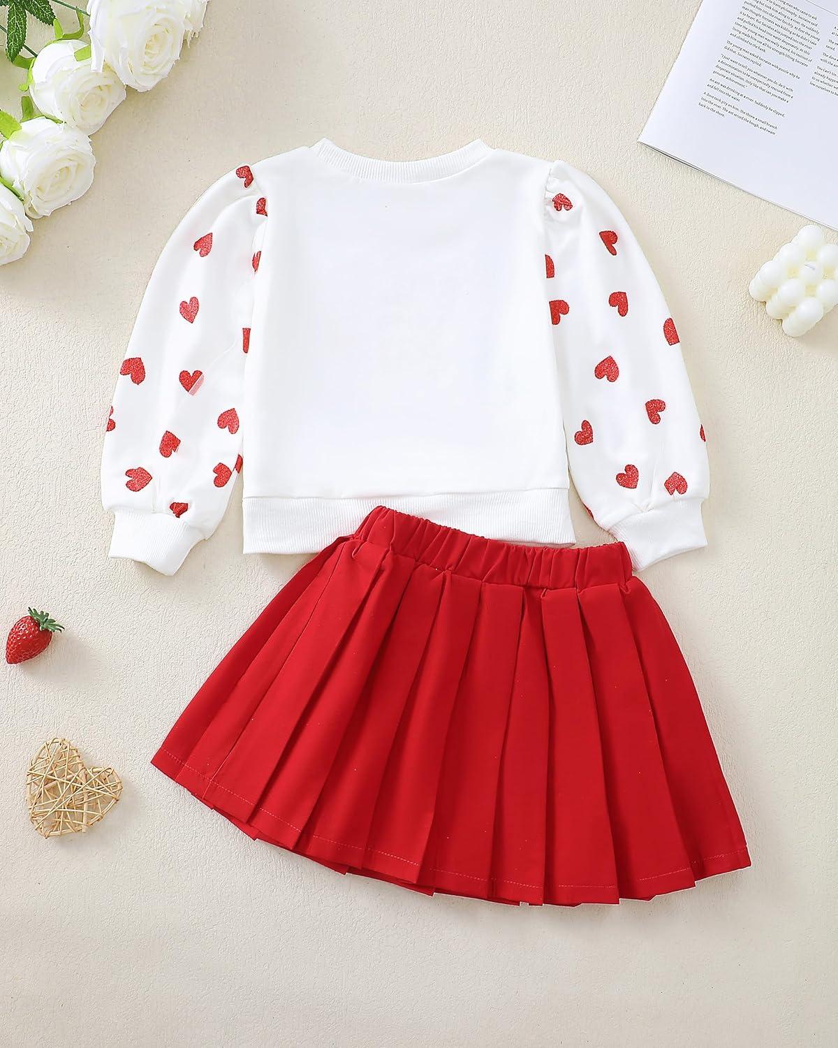 Renotemy Toddler Baby Girl Fall Winter Skirt Set Sweatshirt Pleated A-Line Dress Little Girls Clothes 2-Piece Outfits 18M-6T(Red Heart)